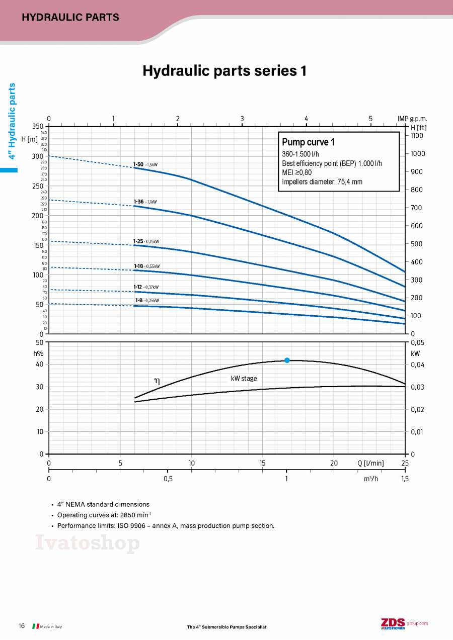 Jedinečný dizajn hydraulickej časti umožňuje čerpadlu dosahovať úžasné výsledky, ako aj čerpať vodu so zvýšenou prítomnosťou piesku - až 120 mg / m³.
