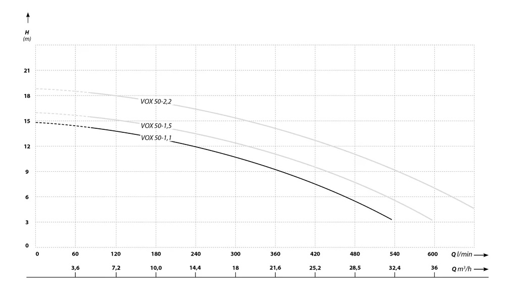 Čerpadlá série VOX 50 sú určené na odčerpávanie domových splaškov a dažďovej vody z domov, bytových domov, komunít, malých podnikov a malých miest. Plný prietok s priemerom 50 mm cez hydraulický systém umožňuje nerušený prenos surových splaškov a fekálií do mestských zberných systémov odpadových vôd.