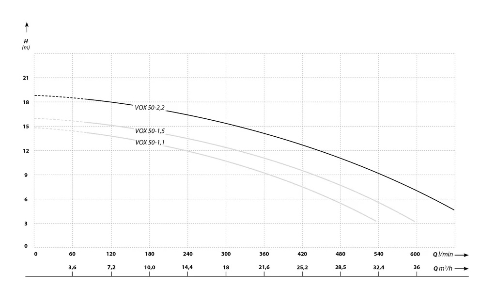 Čerpadlá série VOX 50 sú určené na odčerpávanie domových splaškov a dažďovej vody z domov, bytových domov, komunít, malých podnikov a malých miest. Plný prietok s priemerom 50 mm cez hydraulický systém umožňuje nerušený prenos surových splaškov a fekálií do mestských zberných systémov odpadových vôd.