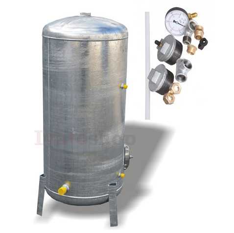 Vertikálne usporiadanie nádrže je na 3 nohách zvarených na obvode nádrže. Vo valcovej časťi sú pevne osadené pripojenia na pripojenie vodoznaku, ktorý určuje hladinu vody v nádrži. Čistiaci otvor je umiestnený v plášti nádoby.