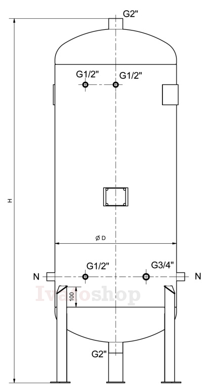 - zvarovaná oceľová stojatá nádoba s pripojovacími nátrubkami obojstrane (zvonka i zvnútra) žiarovo zinkovaná