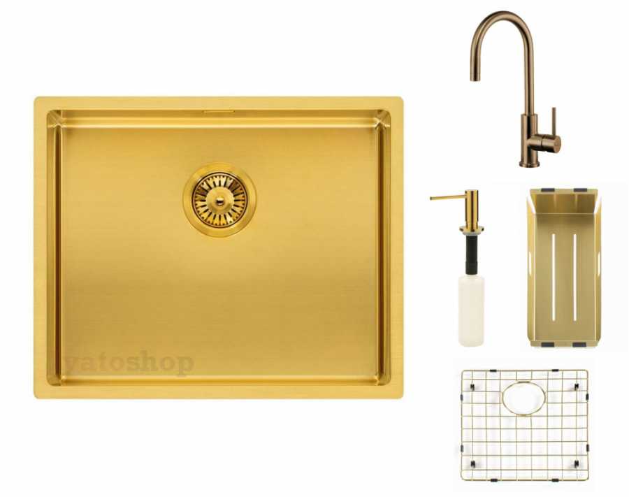 Luxusný zlatý set drezu vrátane príslušenstva vyrába líder na trhu medzi drezami prestížna firma Reginox. Spoločnosť Reginox je na trhu viac ako 39 rokov, kladie dôraz na dizajn, kvalitu aj životné prostredie. Nerezový drez Miami 500 Gold (R30745) je súčasťou dizajnového radu farebných drezov Regi- colour. Set drezu v zlatej farbe sa dokonale hodí do kuchyne v klasickom, glamour, retro, rustikálnom alebo anglickom štýle. Dodá interiéru originálny charakter.