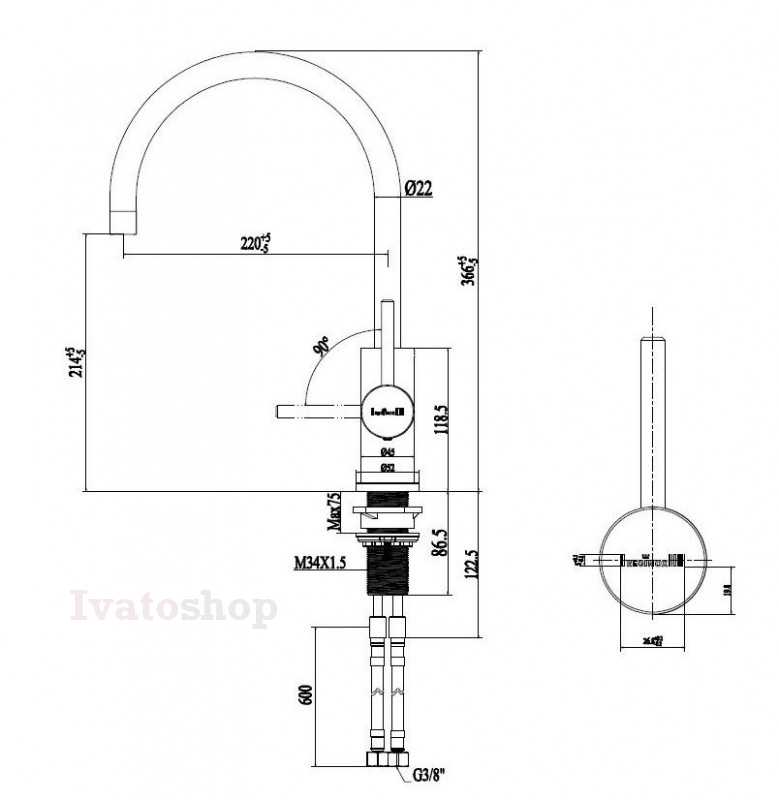 - otočný výtok, rozsah otáčania 360°