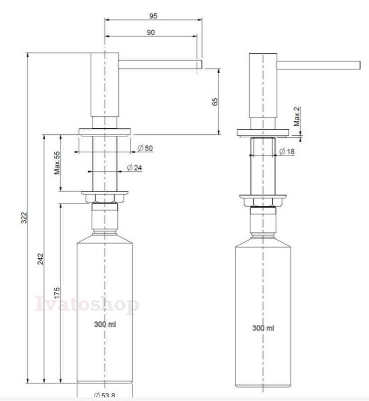 - dávkovač je určený pre: čistiace prostriedky, saponáty tekuté mydlá, sprchové gély, telovú a pleťovú kozmetiku.
