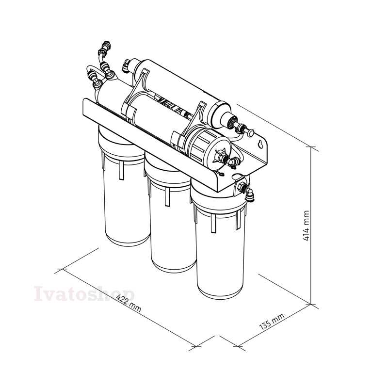 4. stupeň filtrácie: Reverzná osmotická membrána 50 GPDOdstraňuje z vody viac než 95% všetkých tuhých prvkov rozptýlených vo vode, takisto ako aj baktérie, huby a vírusy.