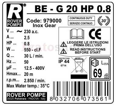 Čerpadla Rover rady G sú zubové monoblokové čerpadlá v in - line prevedení (zhodný priemer sacieho avýtlačného hrdla na jednej ose), určené pre čerpanie neagresívnych kvapalín do 40°C s viskozitou od 1ºE (napr. nafta) do 7ºE (napr. motorový olej SAE 30). Kvapaliny nesmú obsahovať pevné častice. Čerpadlá môžu čerpať napr. vodu, víno, mušt, ovocnú šťavu, ocot, pivo rastlinný olej, minerálne oleje a pod. Pri saní do 2 m môže byť použité čerpadlo bez spätnej klapky. Čerpadlo musí byť vždy zavodnené (zaplnené čerpanou kvapalinou) tak, aby v žiadnom prípade nedošlo k chodu čerpadla na sucho. Motor je jednofázový 230 V s prepínačom smeru otáčania.