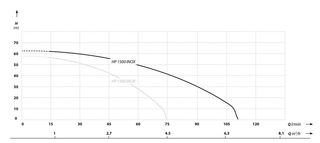 Čerpadlo HP1500 INOX je vyrobené v najvyššej kvalite pri použití najlepších materiálov a spracovania. Nerezové prevedenie umožňuje čerpadlo umiestniť aj do vlhkého prostredia. Čerpadlo určené na dodávku čistej vody z vlastných zdrojov do rodinných domov, pre parcely, farmy, priemyselné závody, alebo na zvyšovanie tlaku. Výhodou čerpadla je schopnosť čerpať vodu až do teploty 70 ° C. Kábel 0,4m bez koncovky pripravený na pripojenie k riadiacej jednotke, alebo tlakovému spínaču.