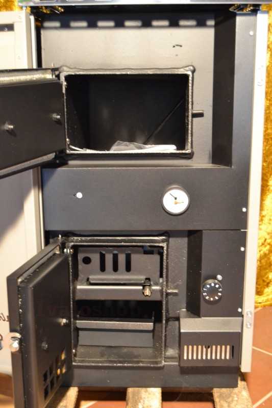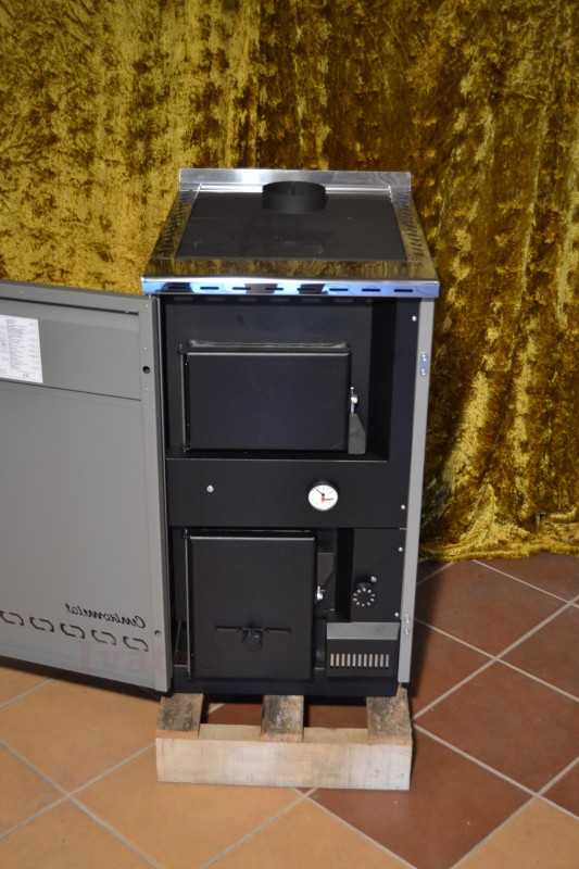 • Etážový kotol na drevo s teplovodným výmenníkom, určený na vykurovanie vody a  varenie.