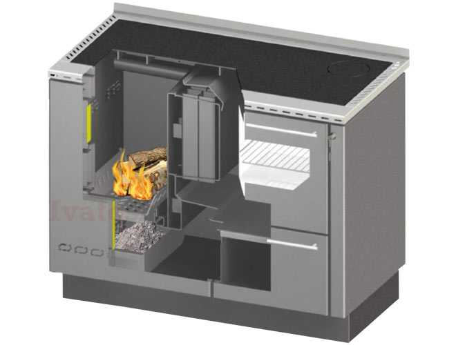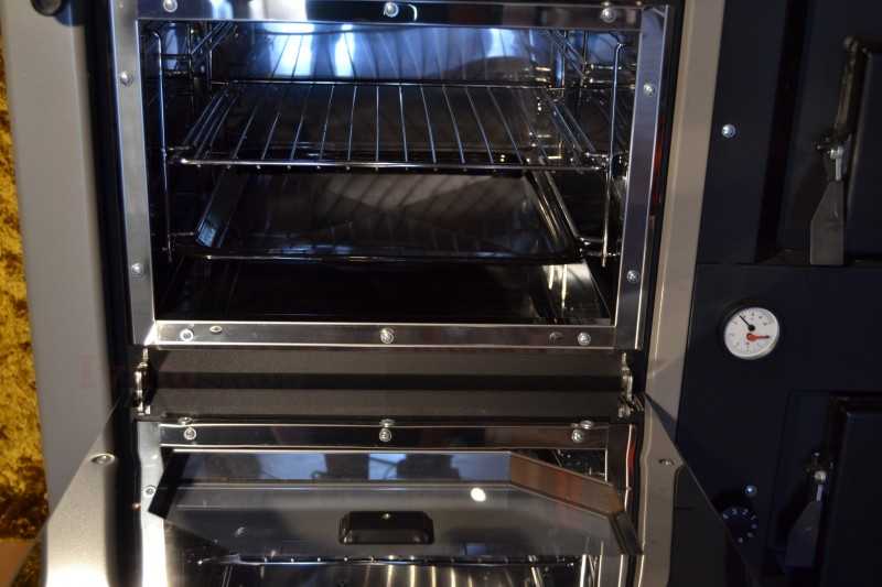 Sporák na drevo z nerezového plechu a kotlovej ocele na centrálne vykurovanie, varenie a pečenie