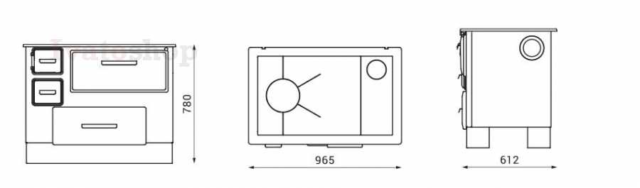 Sporák na tuhé palivo rustikálneho vzhľadu vhodný na vykurovanie miestností s menšou plochou a prípravu jedál tradičným spôsobom. Veľký objem rúry umožňuje prípravu jedla vo väčších nádobách.