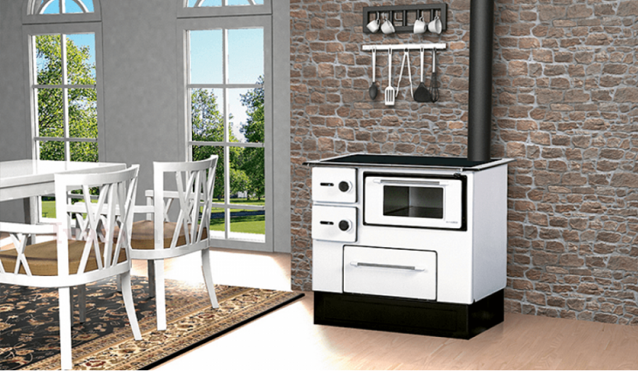 Sporák na tuhé palivo s vylepšenými funkciami, dostupný vo viacerých farbách, vhodný na vykurovanie miestností menších plôch a prípravu chutných jedál tradičným spôsobom.