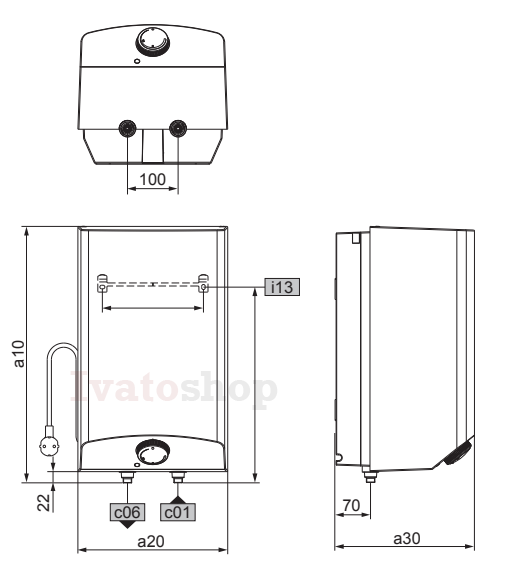 Komfortné funkcie • Malolitrážny ohrievač vody s montážou nad umývadlo je vhodný na decentrálne zásobovanie viacerých odberných miest v závislosti od potreby. • Teplota sa zaznamenáva rýchlo a presne pomocou snímača umiestneného vo vode. • Teplotu je možné plynule nastaviť pomocou otočného ovládača. • Svetelná kontrolka signalizuje ohrev.