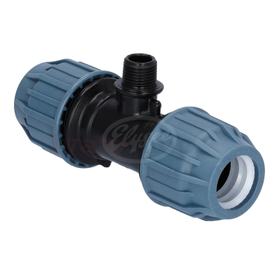 T - KUS na PE potrubie s vonkajším závitom, 25mm x 3/4" x 25mm