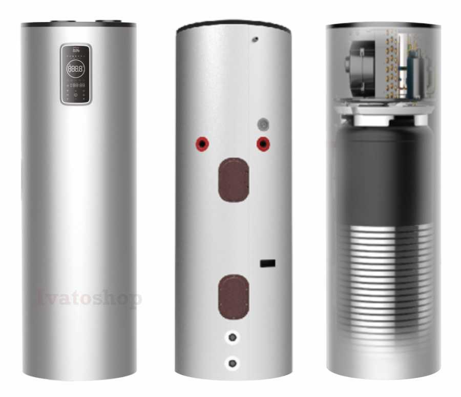 Kompaktné čerpadlo 2v1 s nízkym príkonom odvádza energiu priamo z ovzdušia, ktorú kompresor premení na teplo. Vyrobené teplo odovzdá kondenzačnému výmenníku tepla a ten svojou veľkou plochou okolo nádrže ohreje vodu v ohrievači vody. Čerpadlo používa chladivo R134A a doplnkové elektrické teleso 2 kW.