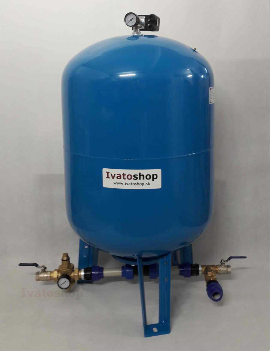 Tlakové nádoby v spojení s povrchovými, alebo ponornými čerpadlami vytvárajú zvyšovanie tlaku vody v systéme. Používanie tlakových nádob zároveň stabilizuje tlak vody v systéme. V dôsledku toho sa zvyšuje životnosť celého systému zásobovaného vodou, no v prvom rade životnosť čerpadiel. V prípade horizontálnych nádrží, povrchové čerpadlo môže byť inštalované priamo na nádrž. V nádobe je pružný vak, ktorý oddeľuje zásobníkový priestor na dve časti. Vo vaku je uložená voda, medzi vakom a stenou nádrže je vzduch pod tlakom. Nádrže s objemom 50L – 150L sú z výroby naplnené vzduchom o tlaku 1,5bar, nádrže s objemom 200L - 500L o tlaku 2 bary. Tlak vzduchu v nádobe sa musí pred prvým použitím upraviť na hodnotu podľa použitého tlakového spínača. Hodnota tlaku v nádobe musí byť o 0,2bar menšia ako zapínací tlak tlakového spínača. Nádoba má autoventil, cez ktorý sa vzduch dopĺňa kompresorom, alebo ručnou pumpou. Tlak vzduchu je potrebné pravidelne kontrolovať (približne raz za šesť mesiacov). Pre meranie tlaku vzduchu v nádržiach môžete použiť tlakomer slúžiaci na meranie tlaku v kolesách vozidla.