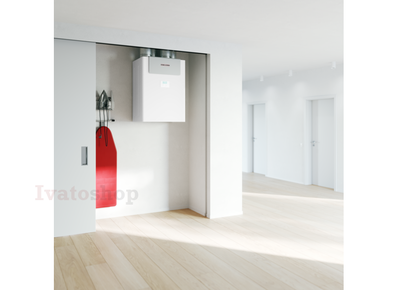 Komfortné funkcie • Moderný dizajn s ergonomicky usporiadanou riadiacou jednotkou.• Integrovaná regulácia je vybavená multifunkčným displejom a týždenným programom a možno ju použiť aj ako jednotku diaľkového ovládania.• Prístroj ponúka celý rad výhod: vysoko účinný, dozadu zakrivený ventilátor s reguláciou konštantného objemového prietoku, vysoko účinný krížový protiprúdový výmenník tepla, elektrický predohrev prostredníctvom vysoko výkonného vykurovacieho registra, obtoková klapka v rámci prívodu vzduchu.• Integrovaný snímač vlhkosti odpadového vzduchu možno použiť na reguláciu prietoku vzduchu v závislosti od vlhkosti.• Jednoduchá výmena filtra vďaka kombinovanej filtračnej kazete. Jemné prachové filtre sú k dispozícii ako príslušenstvo.• Dvojplášťový kryt z oceľového plechu má pohľadovú plochu lakovanú práškovou farbou vo farebnom odtieni alpská biela.