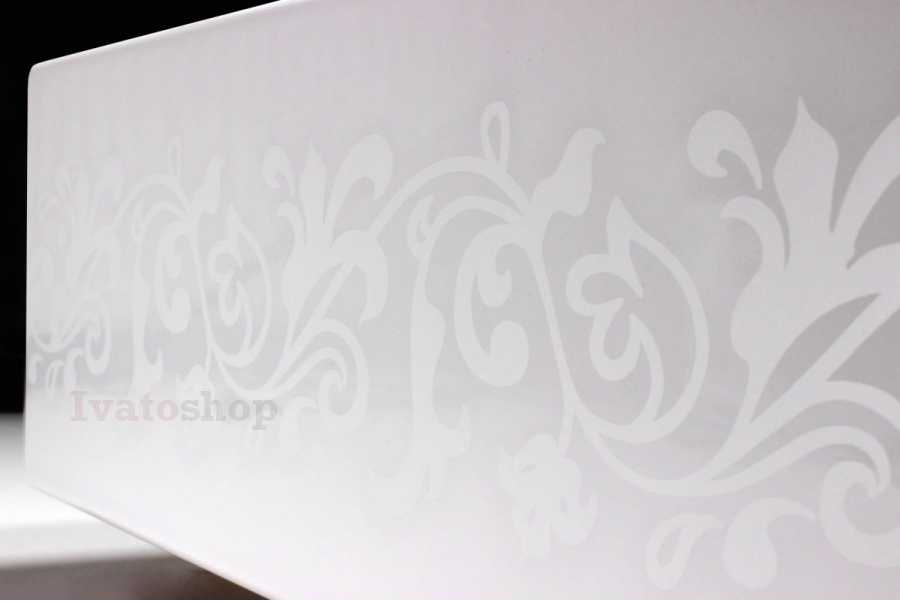 - biely keramický drez s originálnym brúseným White Pearl Décor na prednej strane