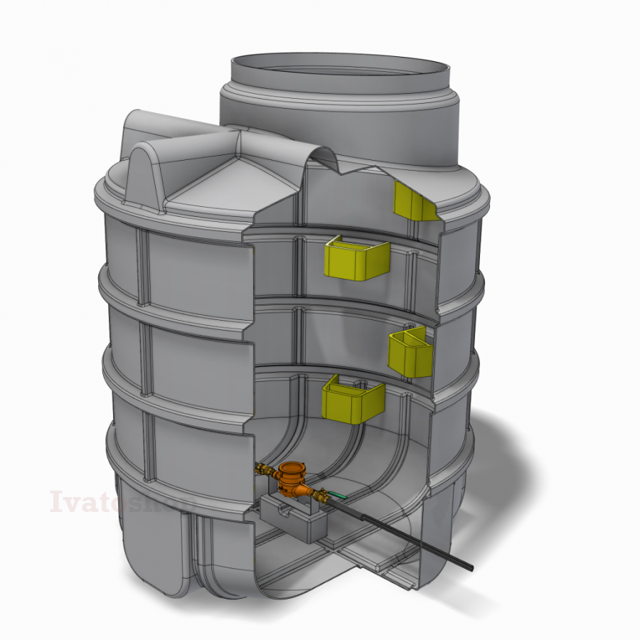 Šachta je vyrábaná technológiou rotačného tvárnenia plastov (bez zvarovania), čo zaručuje vysokú kvalitu a životnosť výrobku. Samonosná konštrukcia bez nutnosti obetónovania a nízka hmotnosť, umožňuje rýchle, jednoduché a finančne nenáročné osadenie. Šachta nevyžaduje údržbu, je dostatočne vystužená a preto v prípadoch, kde sa nevyskytuje spodná voda a šachta nebude pojazdná alebo umiestnená v blízkosti komunikácie, stačí vodomernú šachtu rovnomerne obsypať pieskom alebo preosiatou zeminou.